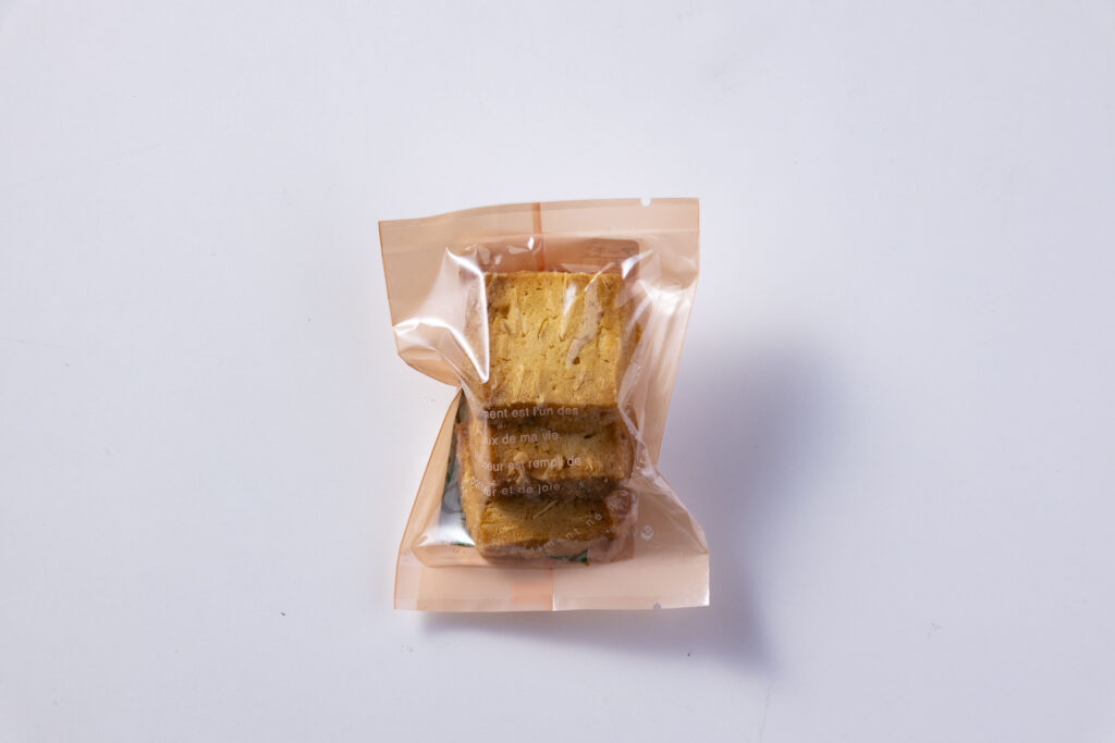 栄養成分表示【推定値】1袋あたり:エネルギー103kcal たんぱく質1.3g 脂質4.9g 炭水化物13.3g 食塩相当量0.05g