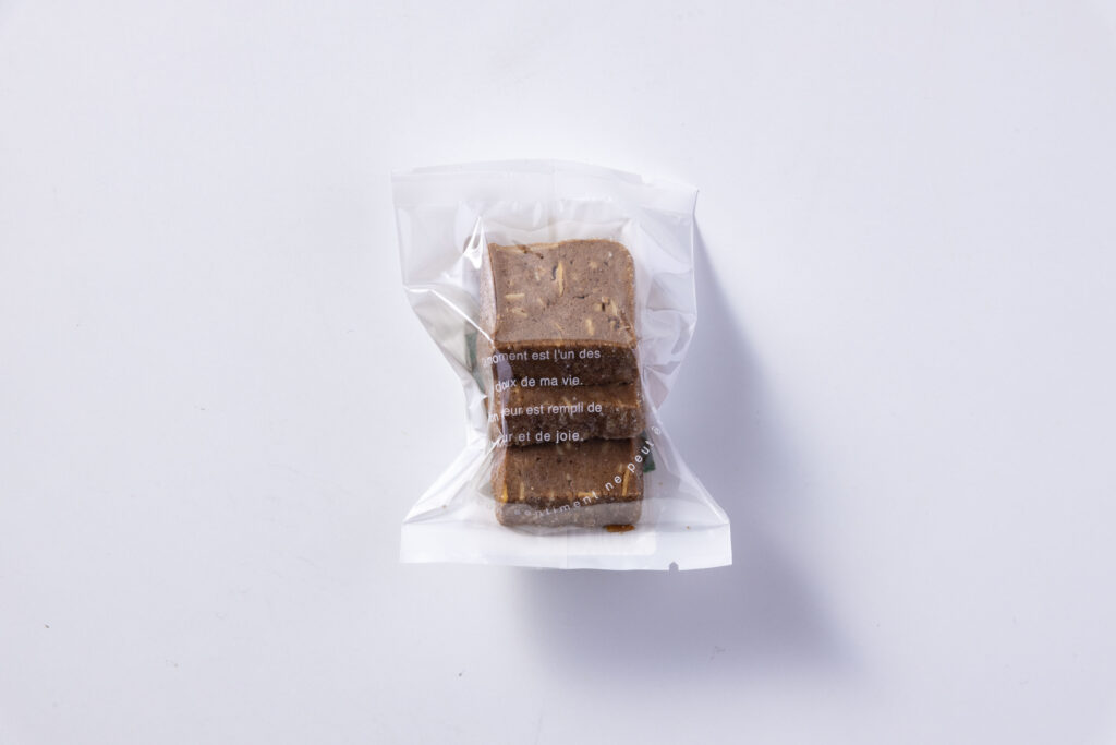 栄養成分表示【推定値】1袋あたり:エネルギー107kcal たんぱく質1.5g 脂質5.6g 炭水化物12.6g 食塩相当量0.04g